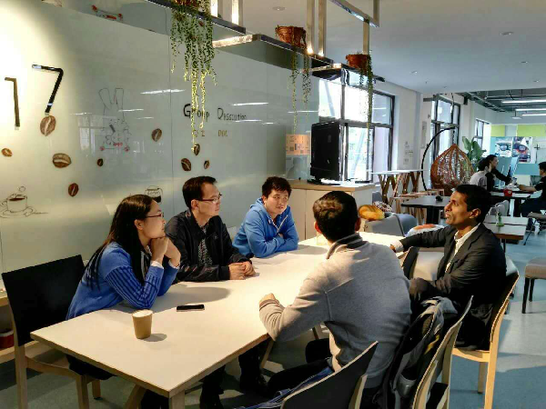 最后讲座结束后,Reddi Kotha副教授参观了上财创客空间,他表示创客空间为创业者们提供了良好的创业氛围,尤其是“咖啡角1917”,给创业者们以家的感觉,创业者们在这样的环境里不仅能交流想法,而且帮助创业者们缓解创业压力。