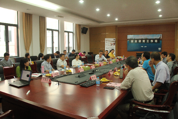 本次创业研究工作坊上,四位专家学者就创业研究的理论成果分别进行了汇报发言。首先,中山大学的张书军教授围绕社会创业的动力机制与决策行为作出报告,提出创业需要持续驱动力。张教授认为,创业者的情感状态对创业决策有影响,两者之间的关系密不可分。创业决策的作出有着货币和非货币两方面的影响因素。接下来,来自同济大学的马小峰副教授在发言中介绍了高科技新创企业的动态能力演变过程。与学界以往已经比较完善的成熟企业研究不同,马教授的关注点在新创企业的能力演变。之后,上海财经大学公共经济与管理学院的吴一平副教授就转型国家制度环境、政治网络对创业的影响进行了深入分析。随后,上海财经大学的刘伟萍助理教授对公司慈善实践与公司经营战略的关系进行了讲解。会议学术气氛浓厚,每位教授的报告结束后都有一个自由讨论时间,各位专家学者就报告中的各种数据来源、研究手段、控制变量方法、其他可行的研究思路等方面提出自己的见解,共同研究探讨。
