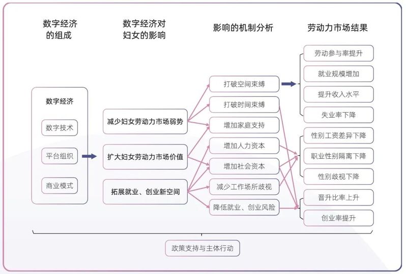 可以说,数字经济的出现带来了一种新的经济形式,它在一定程度上绕开现有的就业环境,让女性直接进入职场参与社会分工,创造出经济价值,让女性也能共享经济发展成果。女性通过互联网扩展家庭以外的社会网络,积累更多人脉资源。